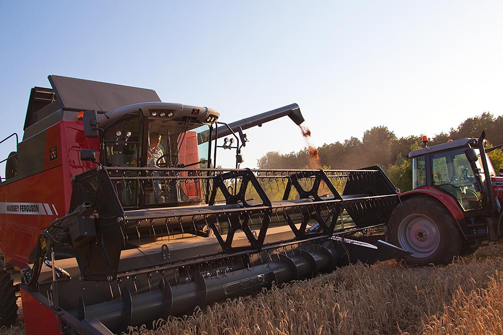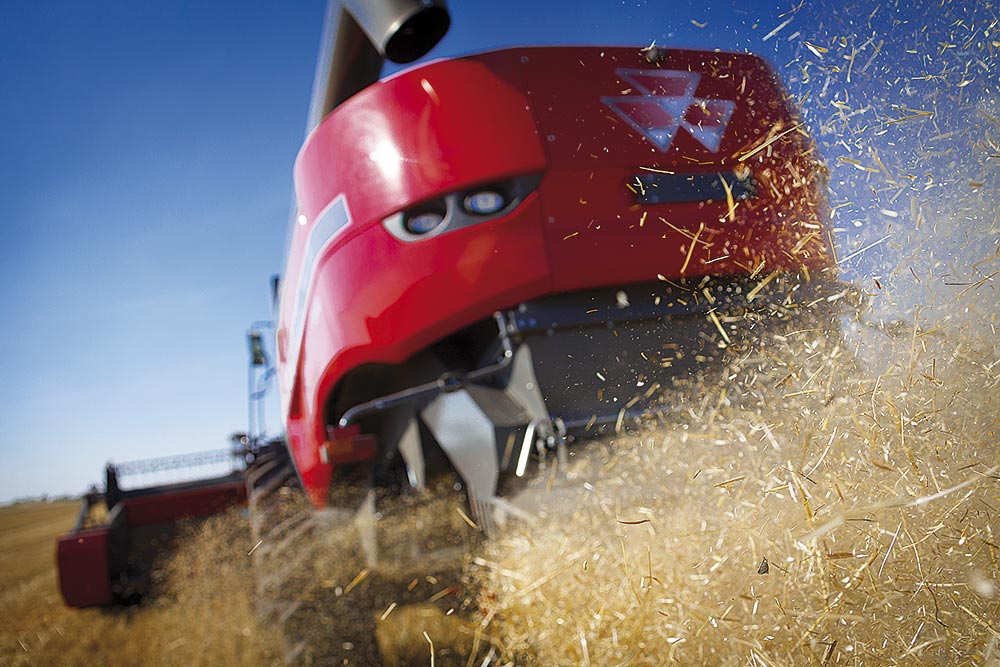 El cabezal es vital para el buen rendimiento de una cosechadora. Massey Ferguson, gracias a su dilatada experiencia, ofrece la gama de cabezales de alto rendimiento FreeFlow y PowerFlow. El cabezal FreeFlow, con un ancho máximo de trabajo de hasta 7,6 m, cuenta con un multiacoplador combinado estándar que facilita el rápido desmontaje del cabezal. Gracias a su autolimpieza y afilado constantes, la cuchilla Schumacher, con 1220 cortes por minuto, mantiene al cultivo en movimiento incluso en condiciones adversas. Los dedos del sinfín, situados a lo largo de toda su longitud, aumentan el rendimiento y aseguran una alimentación rápida y contínua de la garganta, mientras que el cilindro de alimentación PFR, situado en la parte frontal de la misma, logra un flujo de cultivo consistente desde el cabezal hasta el elevador. Puede además invertirse de manera sencilla y efectiva desde la cabina.