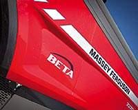 Las múltiples opciones de la MF BETA permiten una amplia variedad de aplicaciones. En el caso de la cosecha de maíz se puede instalar un kit de completo, incluido un cóncavo específico para maíz. Para esta aplicación, el kit de reducción de la velocidad de picado viene como estándar en la versión para grano.