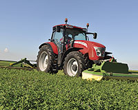 Por otro lado, estos tractores también cuentan con el sistema de gestión de potencia Power Plus, que permite al motor adaptarse a las variaciones de carga para mantener constante el régimen deseado. Durante el transporte por carretera y en los trabajos con la toma de fuerza el sistema interviene proporcionando automáticamente un aumento de potencia de hasta 25 CV y volviendo al valor normal en cuanto se reduce la carga. Este sistema se incluye de serie en cuatro modelos de la gama. Por otro lado, los motores de 6 cilindros están montados en un robusto chasis de fundición, con amortiguadores de caucho, que permite aislar la cabina del ruido y de las vibraciones.