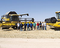 La primera parada de nuestra ruta fue en Arévalo, donde nos juntamos con Óscar Martín, responsable del concesionario Martín e Hijos Maquinaria 2002, representante de la marca en la provincia abulense, entre otras zonas. Él fue el encargado de ofrecernos los primeros datos sobre la máquina, una CX8080 Elevation, y sobre su propietario, Santos González Muñoz, un agricultor que, además de su propia labor, también lleva a cabo trabajos para terceros. Así, junto a la cosechadora sobre la que se llevó a cabo el ensayo, también cuenta con otra máquina New Holland, en concreto una CX860.