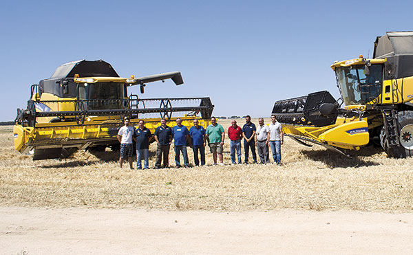 Desde las magníficas instalaciones con las que cuenta Martín e Hijos Maquinaria 2002 en Arévalo, nos trasladamos hasta la localidad de Constanzana, junto con los responsables de la marca, donde se encontraba ubicada la parcela sobre la que se iba a lleva a cabo la prueba. En este punto nos encontramos con Santos, el propietario de la máquina y de la parcela, que nos ofreció algún dato más sobre la misma, como que se trata de una parcela de 6 hectáreas que se explota en régimen de regadío, ubicada en una zona conocida como “Los escobares”. En la presente campaña la mitad de la parcela se encontraba sembrada de trigo de la variedad Craklin, mientras que la otra mitad, sobre la que se desarrolló la prueba, era Alhambra, una variedad de trigo raspudo con una elevada producción, que pasa bien los inviernos y que cuenta con la precocidad necesaria para evitar los golpes de calor tempranos. Se trataba de una parcela sin ningún tipo de accidente geográfico y completamente llana, ideal por tanto para llevar a cabo este tipo de prueba. Al tratarse de una parcela de regadío no se ha visto tan afectada por la intensa y prolongada ola de calor que ha registrado la mayor parte de la Península durante este verano, de manera que el cereal se encontraba alto, con unos 78 cm de media, y con una gran densidad, unas condiciones por tanto idóneas para comprobar el rendimiento de la máquina. No obstante, el propio Santos comentó que al cultivo le ha faltado un último riego para encontrarse en condiciones óptimas, pero que no se lo pudo dar por falta de agua.