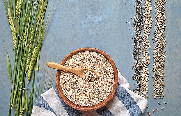 La Quinoa, mantiene contenidos de ácidos grasos saludables, una específica riqueza proteica y una alta concentración de nutrientes, como Omega 3 y Omega 6. Mantiene un equilibrado grado de proteínas, hierro, fósforo y calcio. Sus grasas son del tipo monoinsaturadas y poliinsaturadas, lo que combate los índices de colesterol del tipo (LDL) o malo y eleva el colesterol del tipo (HDL) o bueno. Su contenido en proteínas son, principalmente, del tipo albúmina y globulina. Mantiene carbohidratos en almidón sobre el 58%/68% y el 5% en azúcares. Más del 30% del peso de la semilla lo constituye el germen, mantiene vitaminas del tipo C, E, complejo B y ácido fólico. Previene enfermedades de tipo cardiaco. Muy aconsejado su consumo en personas que realizan esfuerzos físicos, por su alto aporte de proteínas, en general su consumo nos concede una gran fuente de energía sana. Su considerable aporte de magnesio, nos aliviara contra la migraña. Muy recomendado su consumo para personas celiacas, perfecto para elaborar distintos productos de bollería o pan.